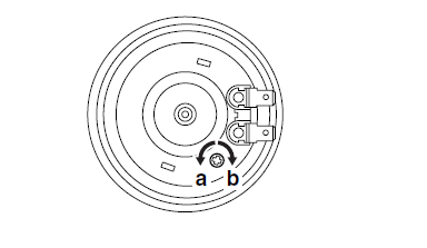 b. Turn the adjusting screw in direction "a" or "b" until the specified horn sound is obtained.