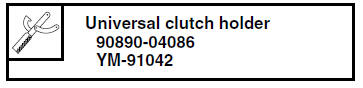 a. Check that projection "a" on the clutch push lever "1" aligns with mark "b" shown on the crankcase in the illustration by pushing the clutch push lever manually in direction "c" until it stops.